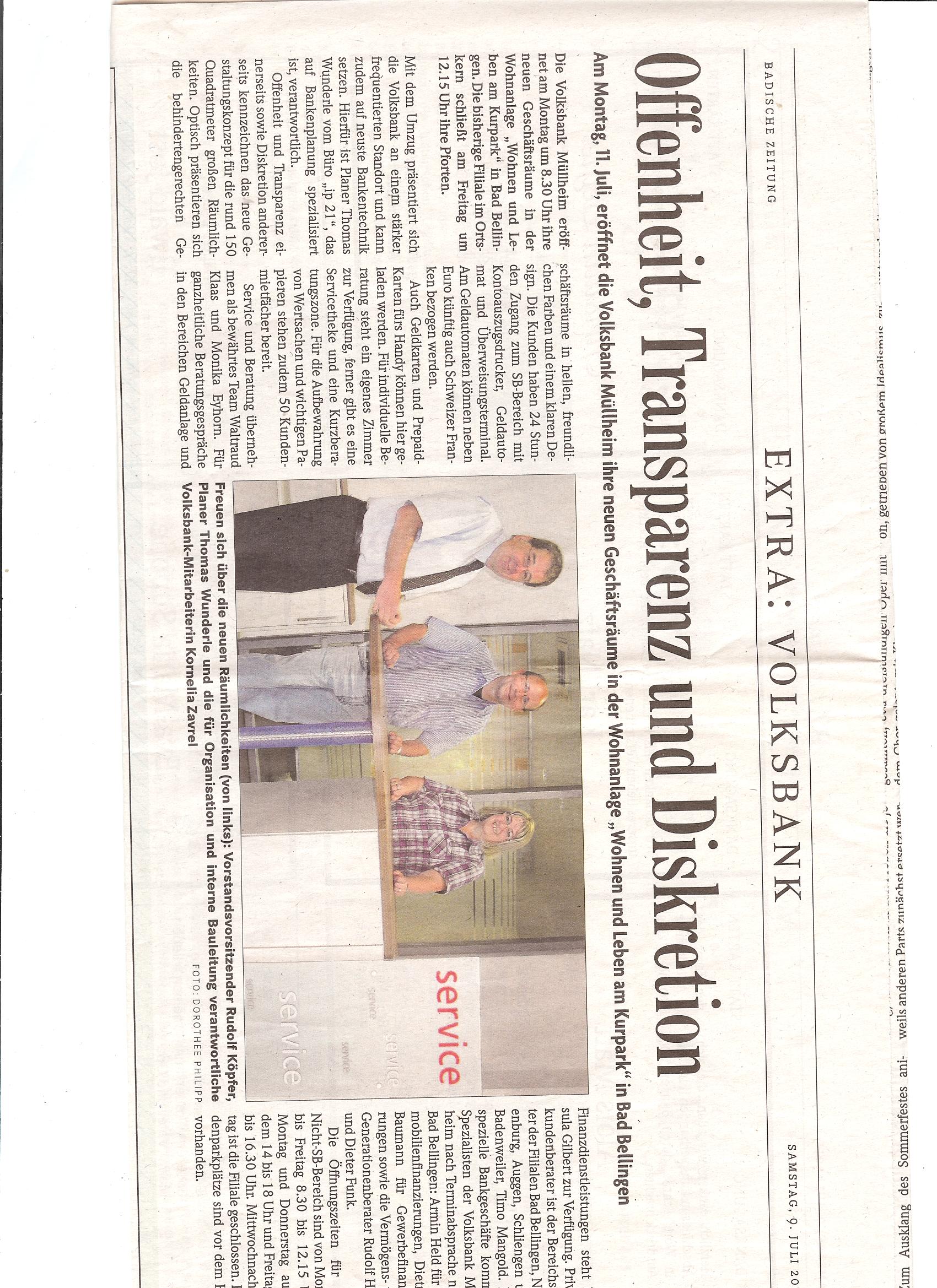 Eröffnung Volksbank Neuenburg, April 2014 - Bad. Zeitung